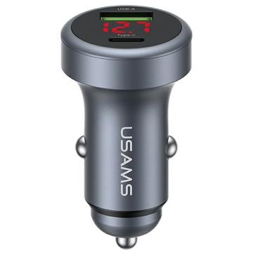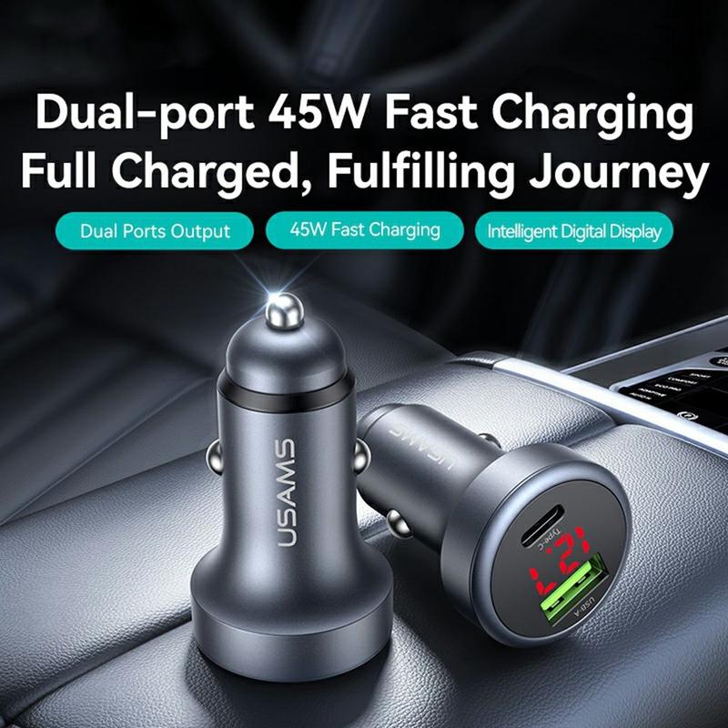 Usams CC327 C44 Dobbelports billader - 45 W hurtigladende aluminiumsadapter med spenningsvisning
