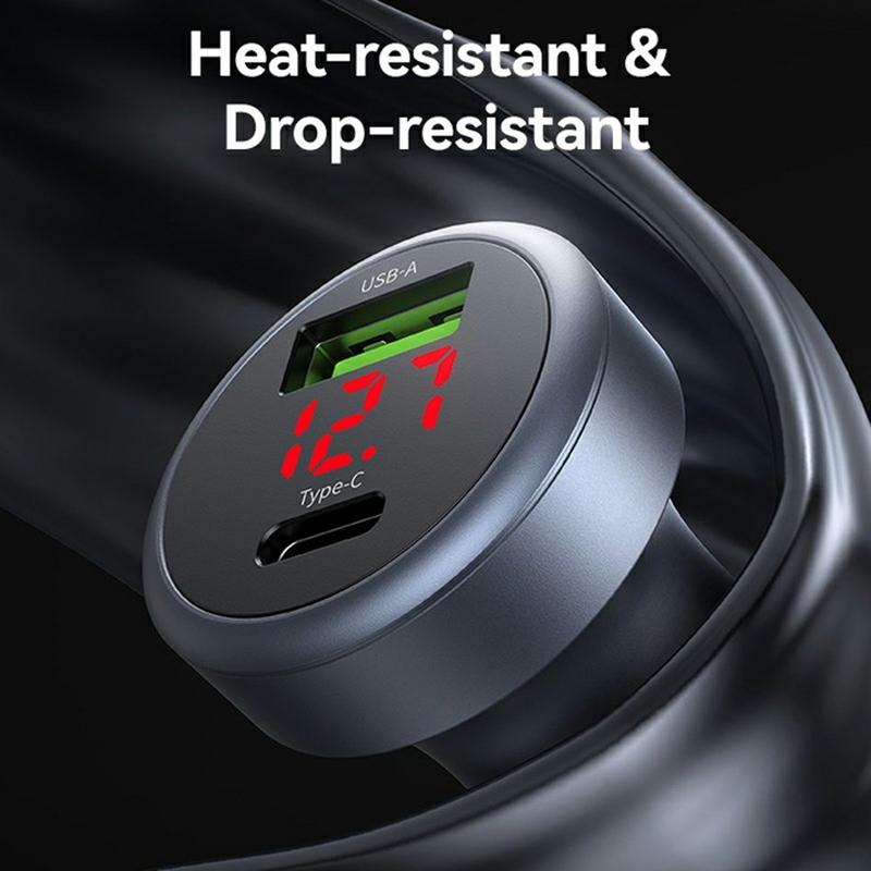 Med USB-A- og Type-C-utganger eliminerer laderen ventetid ved å forsyne to enheter med strøm samtidig. Dette er ideelt for delte bilturer, navigasjon pluss lading, eller bruk av fører og passasjer.