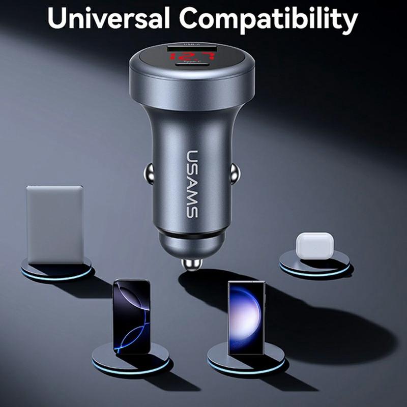 USAMS CC327 C44 tilbyr hastighet, sikkerhet og sanntidsovervåking i en kompakt design. Med kraftig hurtiglading, førsteklasses materialer og en smart spenningsvisning er den en utmerket oppgradering for sjåfører som er avhengige av enhetene sine mens de er på veien.