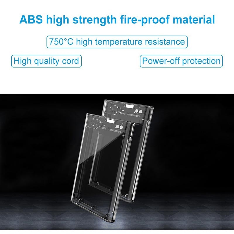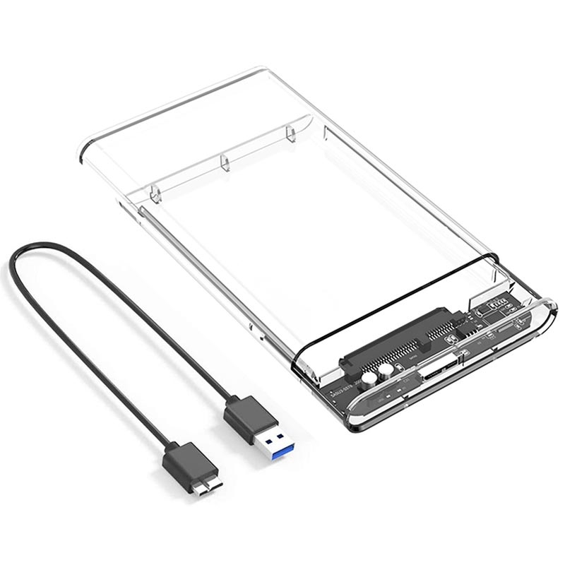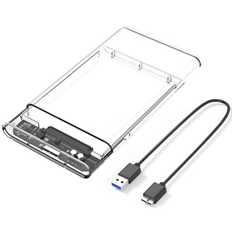 USB 3.0 2.5" SATA HDD/SSD-kabinett - gjennomsiktig eksternt harddiskkabinett med UASP, opptil 5 Gbps, LED-indikator, 50 cm USB-A-kabel (7 mm / 9,5 mm)