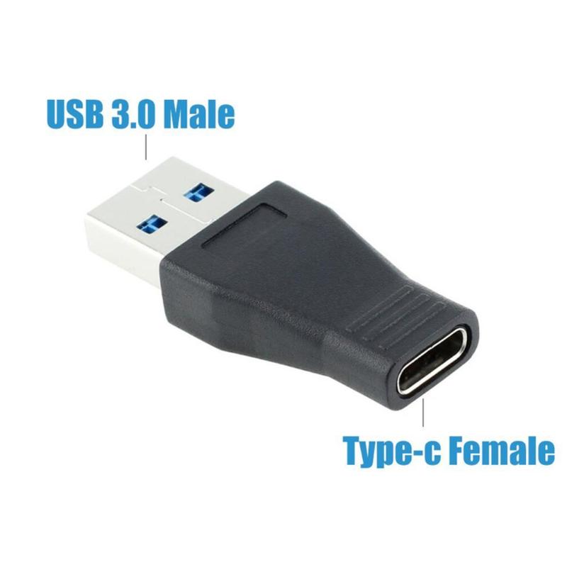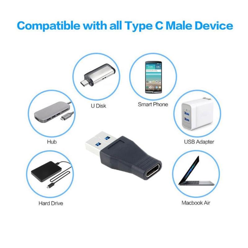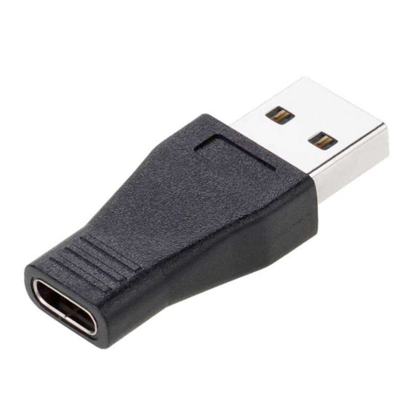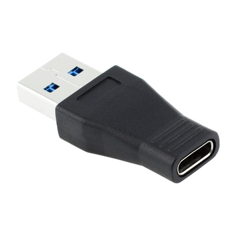 - USB-A hann til USB-C hunn-omformer; støtter USB 3.0 SuperSpeed (USB 2.0 på den ene siden)