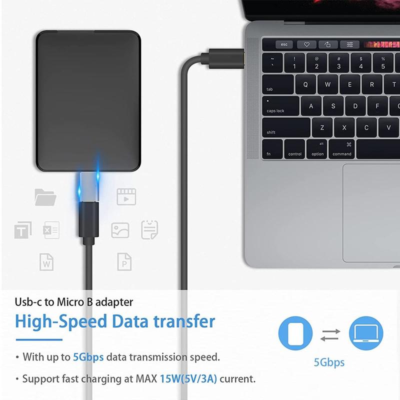 Koble din eksterne harddisk eller SSD med en Micro USB 3.0 Micro-B-port til moderne USB-C-enheter ved hjelp av denne kompakte USB-C-hunn til Micro-B-hann-adapteren. Den er designet for å koble eldre bærbar lagring til nyere bærbare datamaskiner, stasjonære datamaskiner og nettbrett med USB-C eller Thunderbolt 3, slik at du kan overføre filer raskt uten å måtte ta med ekstra dongler. Med en datahastighet på opptil 5 Gbps og en solid, tett passform i begge ender, gir den stabil ytelse for sikkerhetskopiering, medieoverføring og redigering direkte fra harddisken.