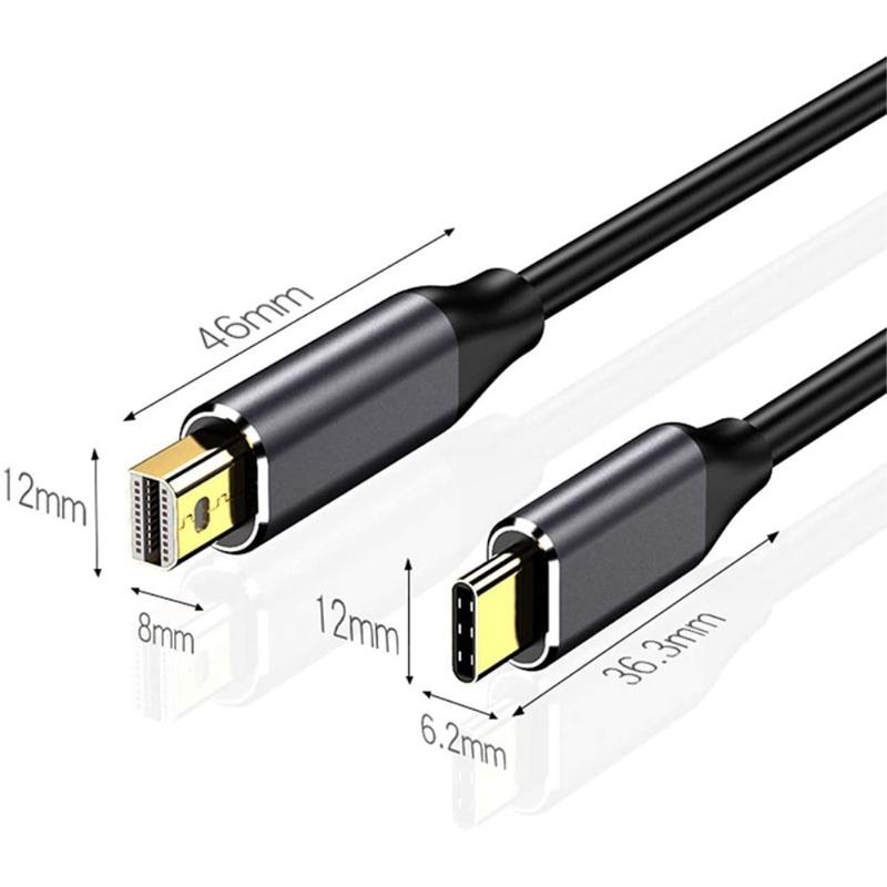 USB-C til Mini DisplayPort-kabel 1.8m - kompatibel med Thunderbolt 3, 4K/60Hz video, aluminiumslegering