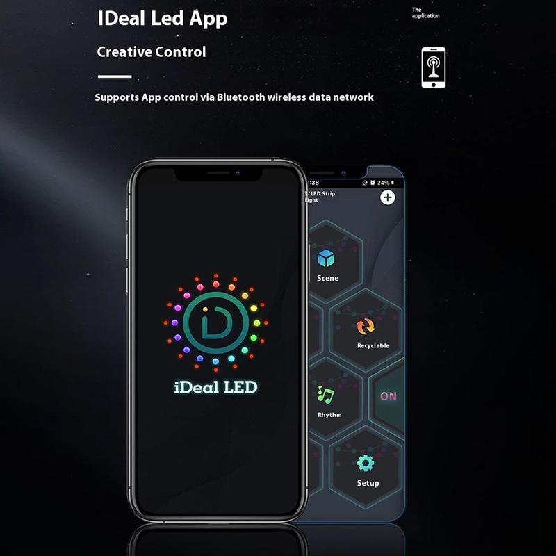 - Smart appkontroll - Koble til via Bluetooth og bruk iDeal LED-appen til å tilpasse farger, lysstyrke, effekter og mønstre direkte fra smarttelefonen din.