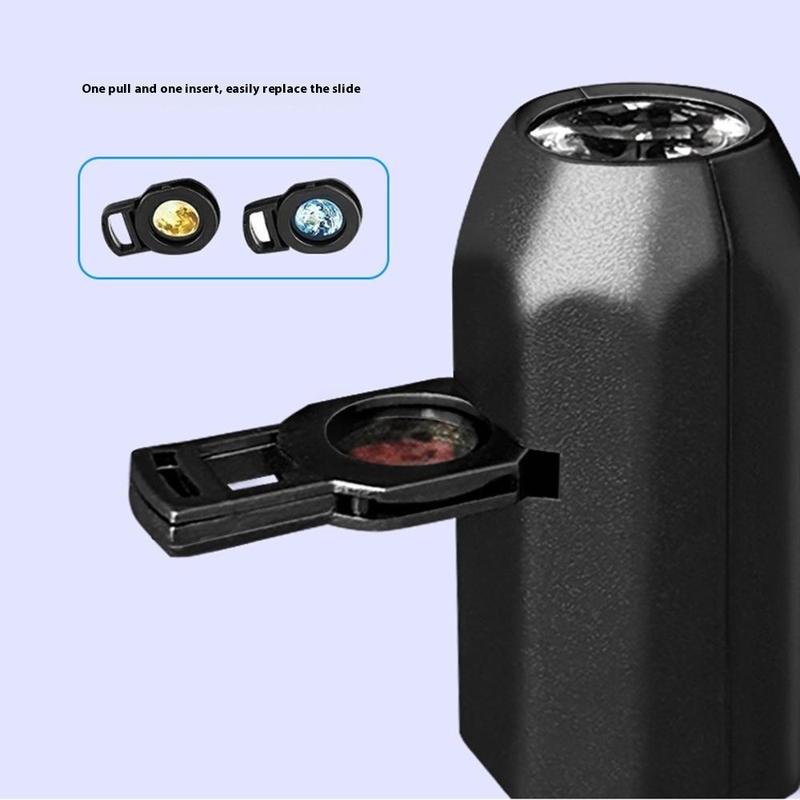 - 10 utskiftbare lysbilder - Inkluderer flere planetdesign for personlige projeksjonstemaer.