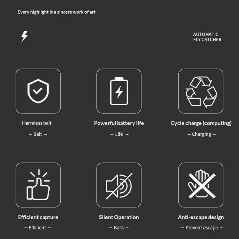 Denne fluefanger er et smart kjøp for alle som ønsker en gjenbrukbar, støysvak og vedlikeholdsvennlig måte å redusere antall flygende insekter innendørs på. Den kombinerer stille drift, USB-lading og et vaskbart design i én praktisk enhet, noe som gjør den spesielt nyttig for hjem, kjøkken, spisestuer og små bedrifter. Den lange batterilevetiden gir også ekstra bekvemmelighet ved å redusere behovet for hyppig lading.