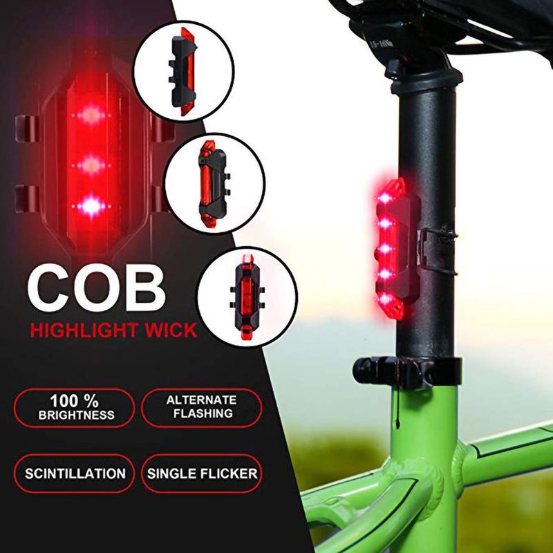 Vanntett USB-oppladbart flash-baklys, advarselssykkellys, automatisk avstengning når full belastning
