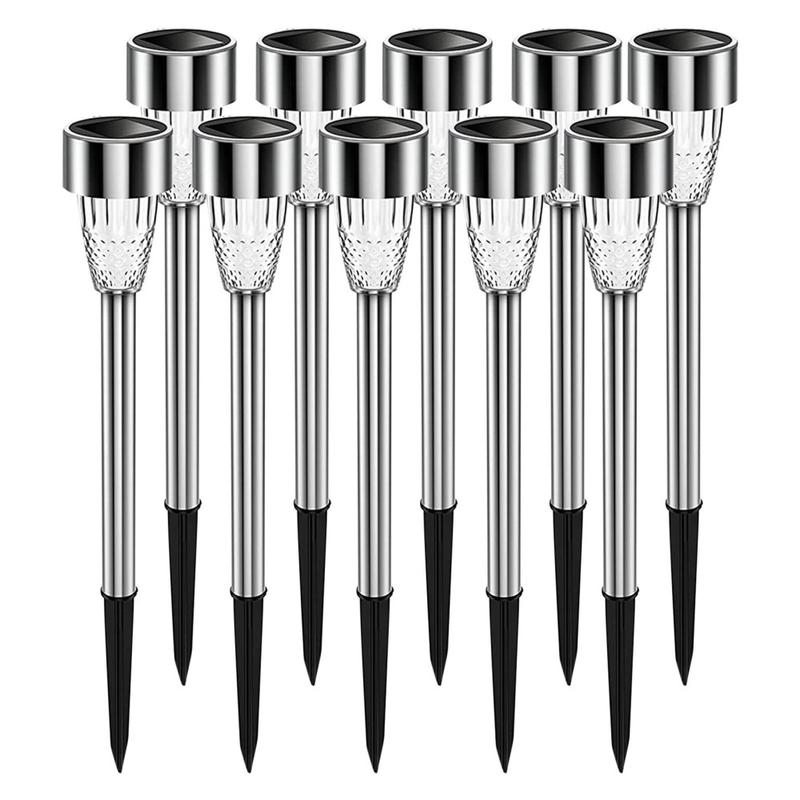 Utendørs dekorative, vanntette og deformasjonssikre solcellelys i rustfritt stål - 10 stk.