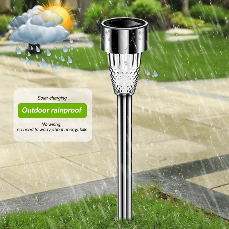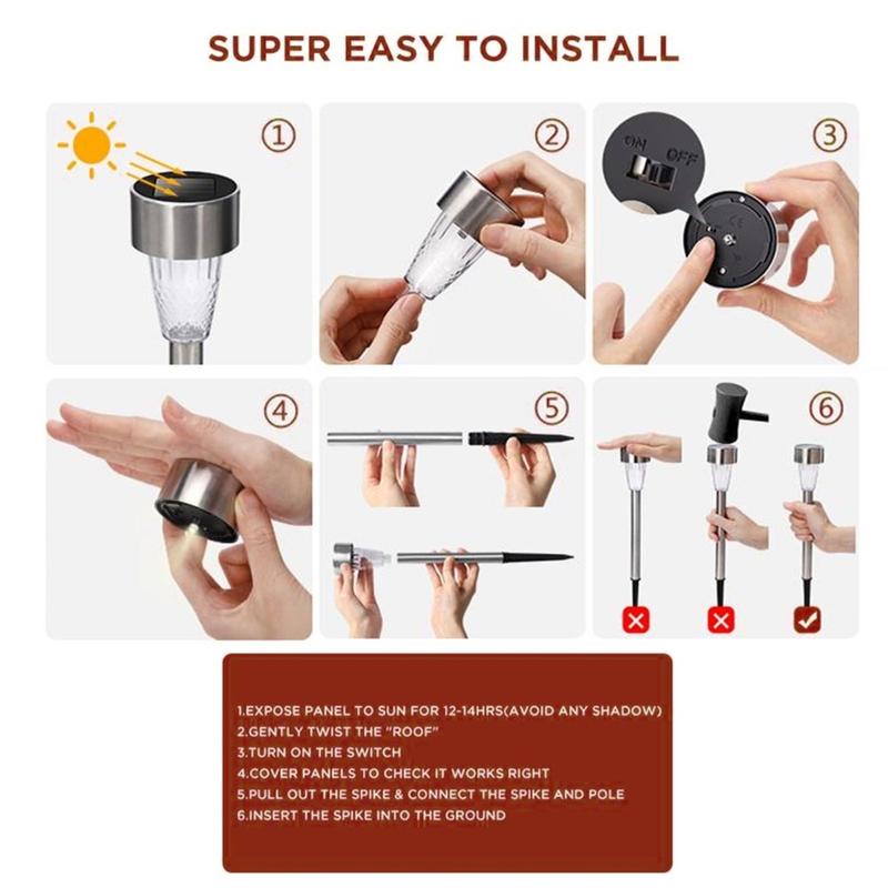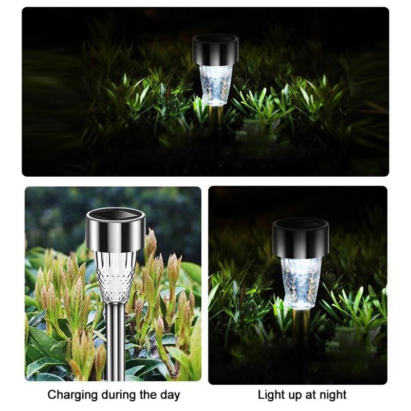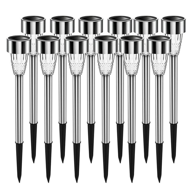 Utendørs dekorative, vanntette og deformasjonssikre solcellelys i rustfritt stål - 12 stk.