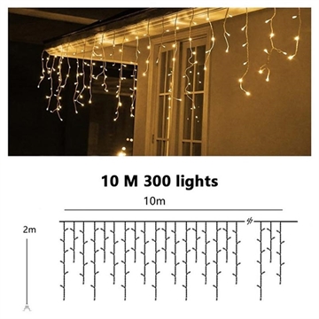 - Fossegardin med 300 varmhvite lysdioder som gir et mykt, innbydende lys