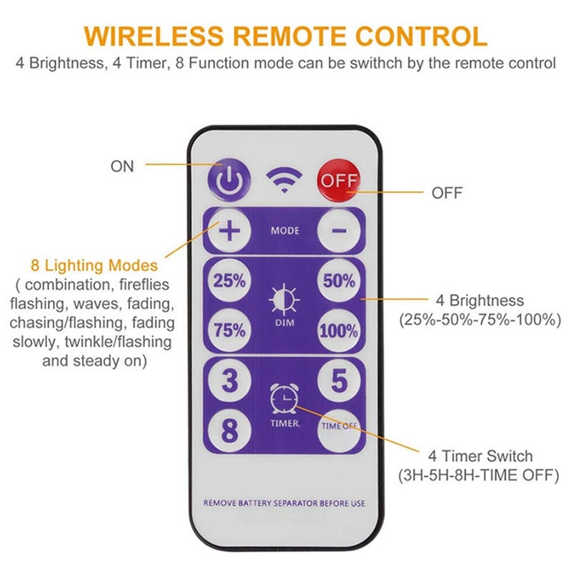 Solcellelamper 10m - 300 LED-fosslykter med fjernkontroll, IP55