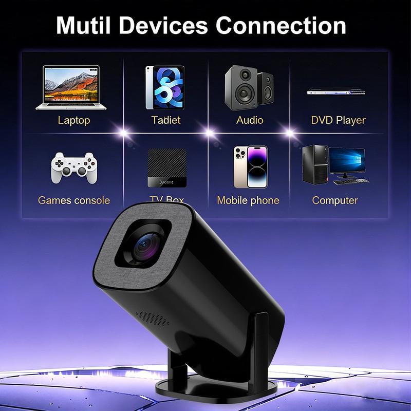V1 bærbar Android 14-projektor (200 ANSI) - 720p native, automatisk keystone, 180 tilt, WiFi 6 dual-band og Bluetooth 5.2, 1 GB/8 GB