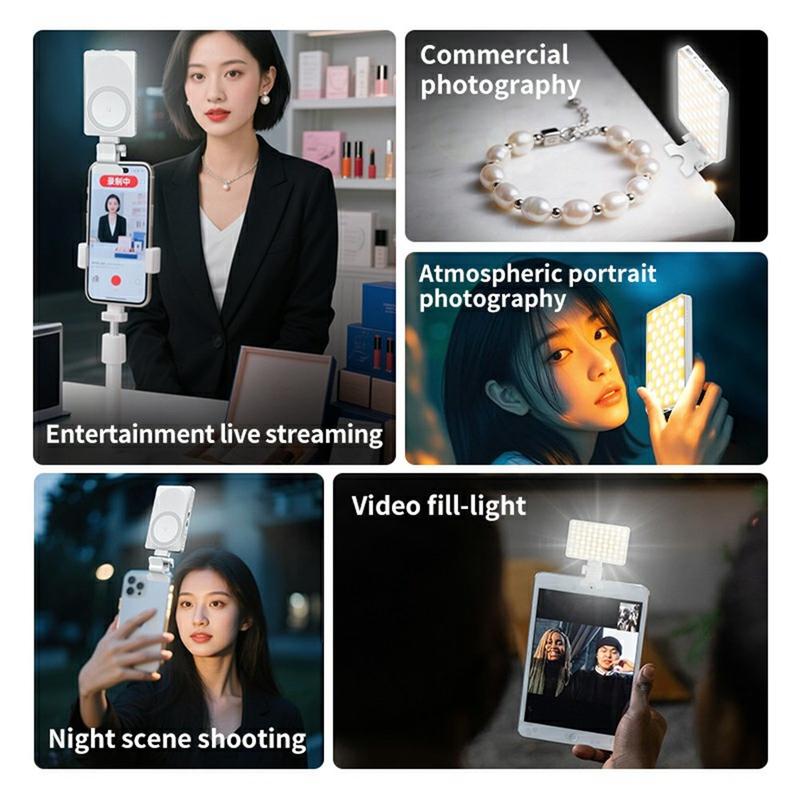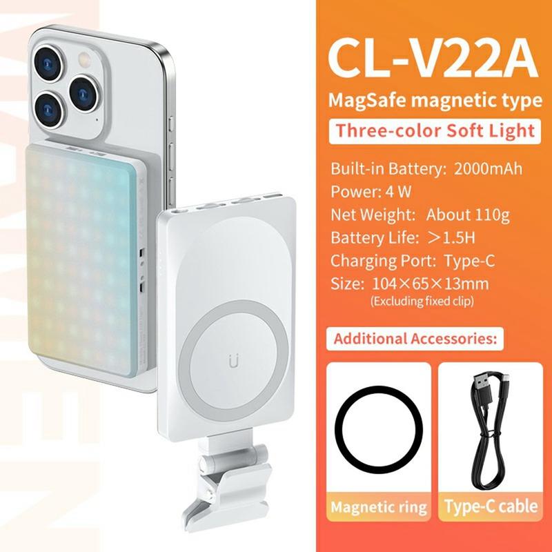 V22A Portable Magnetic LED Fill Light gir kraftig og nøyaktig belysning i en kompakt design som er ideell for smarttelefoner, kameraer og strømmeoppsett. Med Type-C-lading, justerbar lysstyrke og et bredt fargetemperaturområde sikrer den utmerkede resultater uansett om du filmer innendørs, utendørs eller på farten.