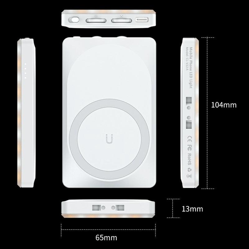 V22A 4W bærbar, magnetisk LED-fyllelys - oppladbart Type-C-kameralys i lommestørrelse for telefon og direktesending