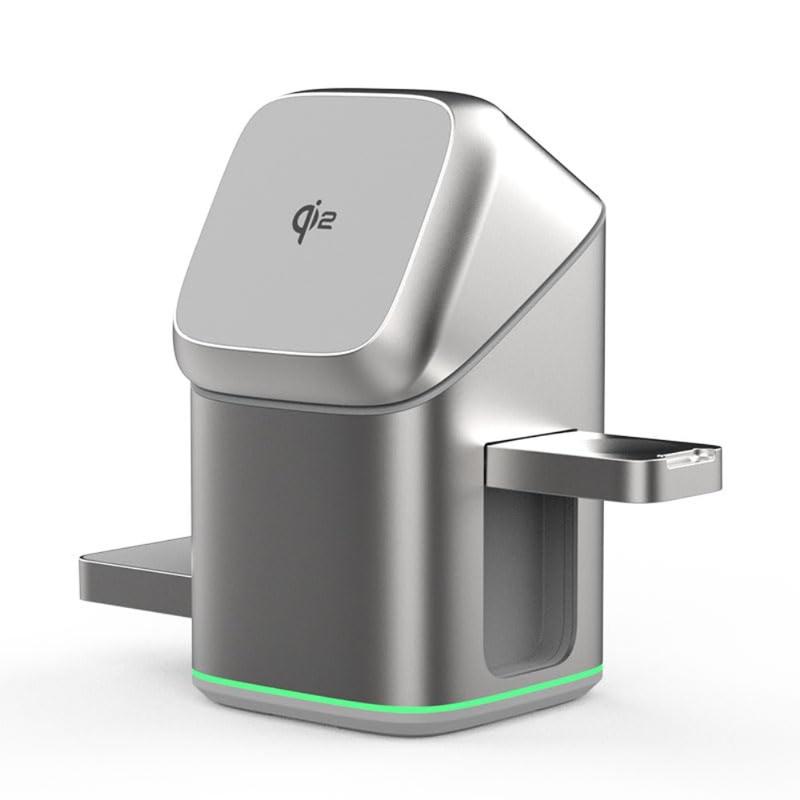 - 3-i-1 trådløs ladestasjon for telefon, klokke og ørepropper