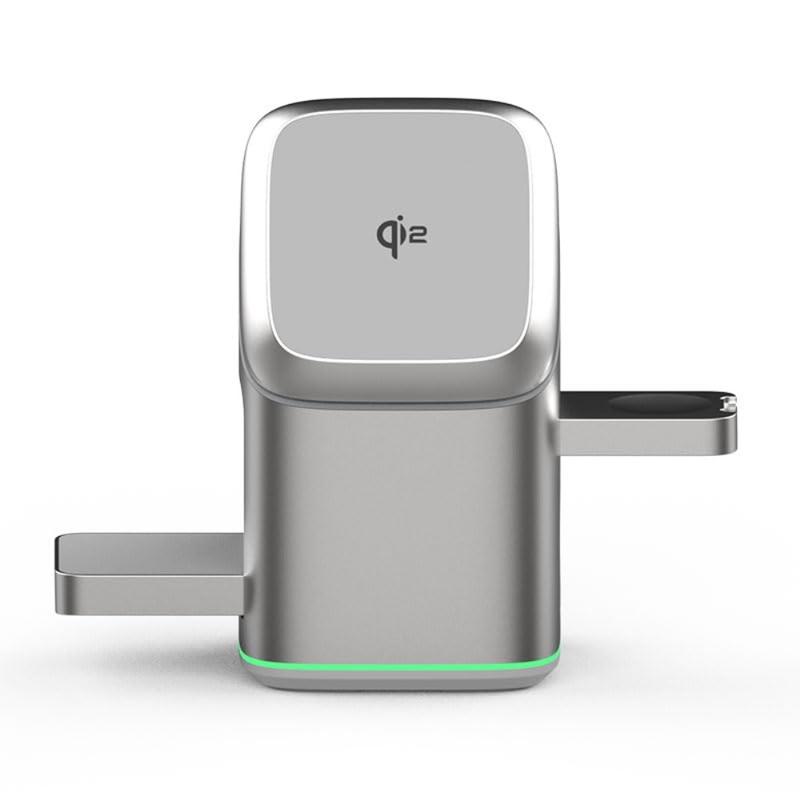 V23 3-i-1 MagSafe-lader er en kompakt og elegant ladestasjon som er designet for å gi strøm til smarttelefonen, smartklokken og de trådløse øreproppene dine samtidig. Med Qi2-sertifisering og et roterende magnetisk design gir den effektiv lading samtidig som den holder orden på enhetene dine.
