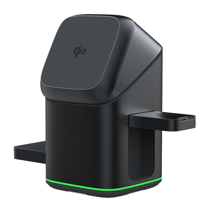 - 3-i-1 trådløs ladestasjon for telefon, klokke og ørepropper