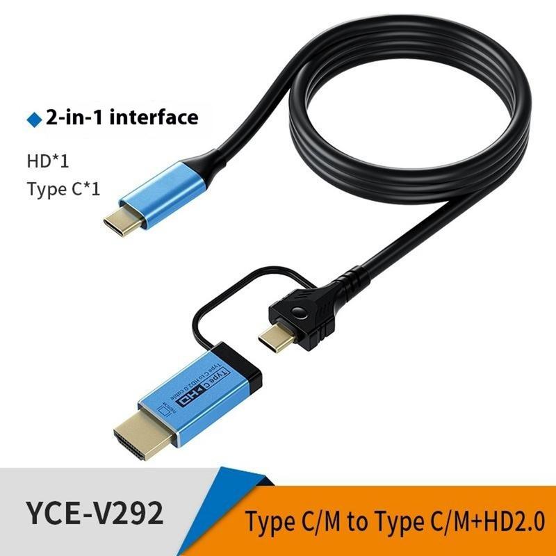 V292 4K 60 Hz Type-C til Type-C + HDMI 2.0-adapterkabel - 2-i-1 høyhastighets data- og videokonverterer i aluminiumslegering