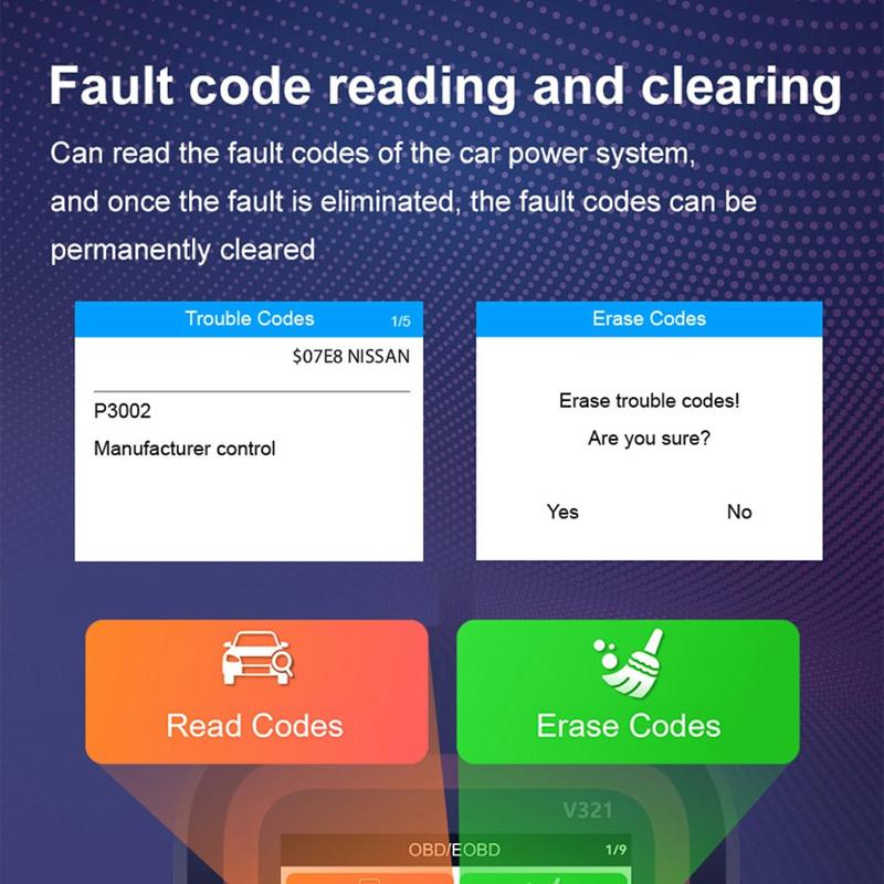 Plugg inn, slå på og diagnostiser på få minutter. Den håndholdte OBD2-skanneren V321 kobles til bilens diagnoseport og viser tydelige feilkoder, live-parametere og batteritilstand på en lyssterk 2,4" fargeskjerm (320 × 240). Med støtte for alle OBD II/EOBD-protokoller og en enkel plug-and-play-arbeidsflyt er den et ideelt verktøy i hanskerommet for raske kontroller før en tur eller etter en reparasjon.