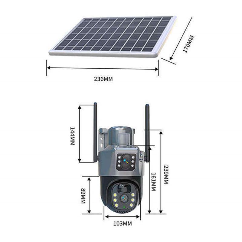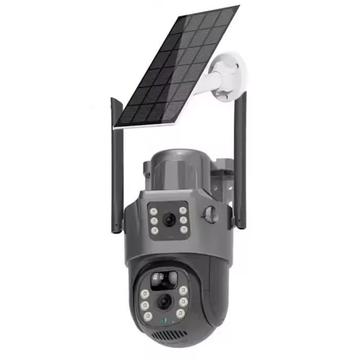 V380 4G solcelledrevet utendørs overvåkningskamera - 4 MP PTZ-kamera med to objektiver, nattesyn i fullfarge og bevegelsesdeteksjon