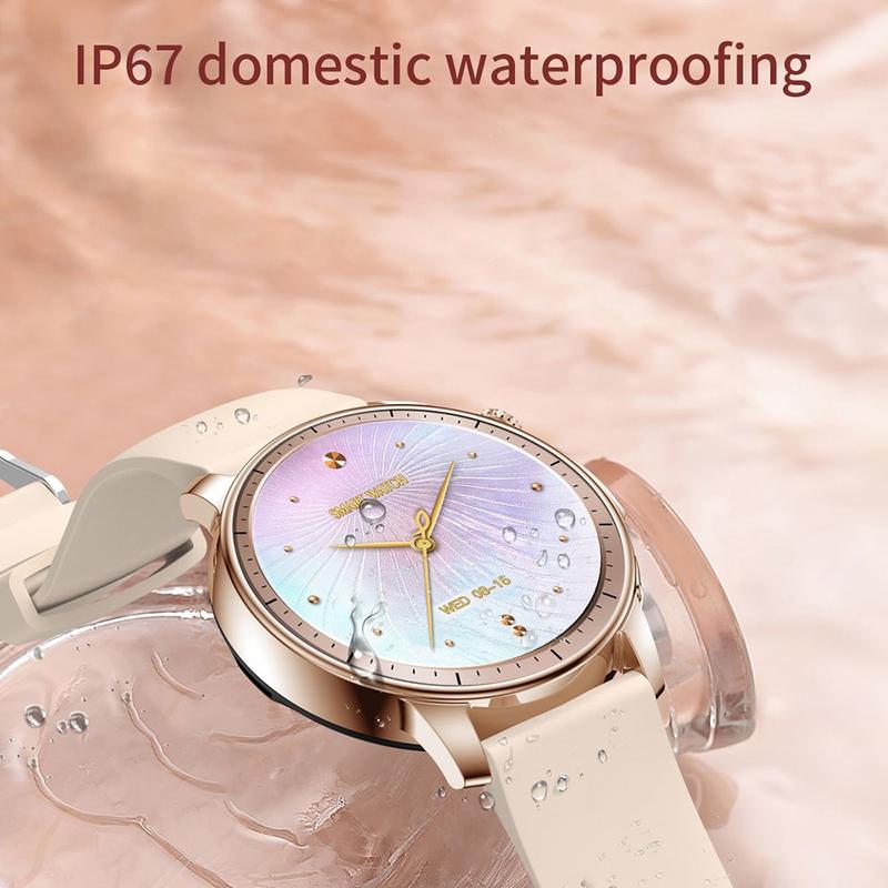 V65 1,32-tommers smartklokke med AMOLED-berøringsskjerm og pulsmåler for kvinner med sportsarmbånd i silikon - Gull