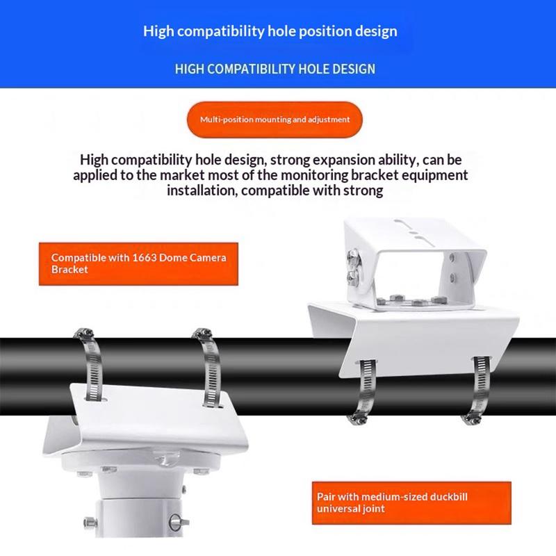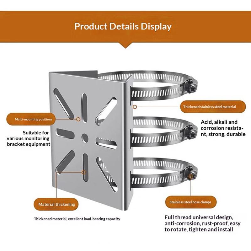 Det værbestandige stolpemonteringsfestet for CCTV-kameraer er utformet for å gi sikker og langvarig støtte for overvåkningskameraer i utendørs miljøer. Den er laget av høyfast rustfritt stål og sørger for stabil posisjonering og pålitelig ytelse for sikkerhetsoppsett i boliger, næringsbygg og industri.