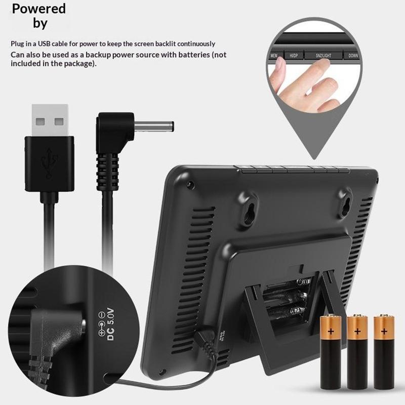 Denne enheten fungerer også som vekkerklokke med snooze-funksjon, noe som gjør den praktisk å ha ved sengen eller på skrivebordet. Med både stativ og veggfeste kan den plasseres på forskjellige steder, avhengig av hva du foretrekker. Kombinasjonen av værovervåking og vekkerfunksjon gjør den til en praktisk multifunksjonell enhet for daglige rutiner.