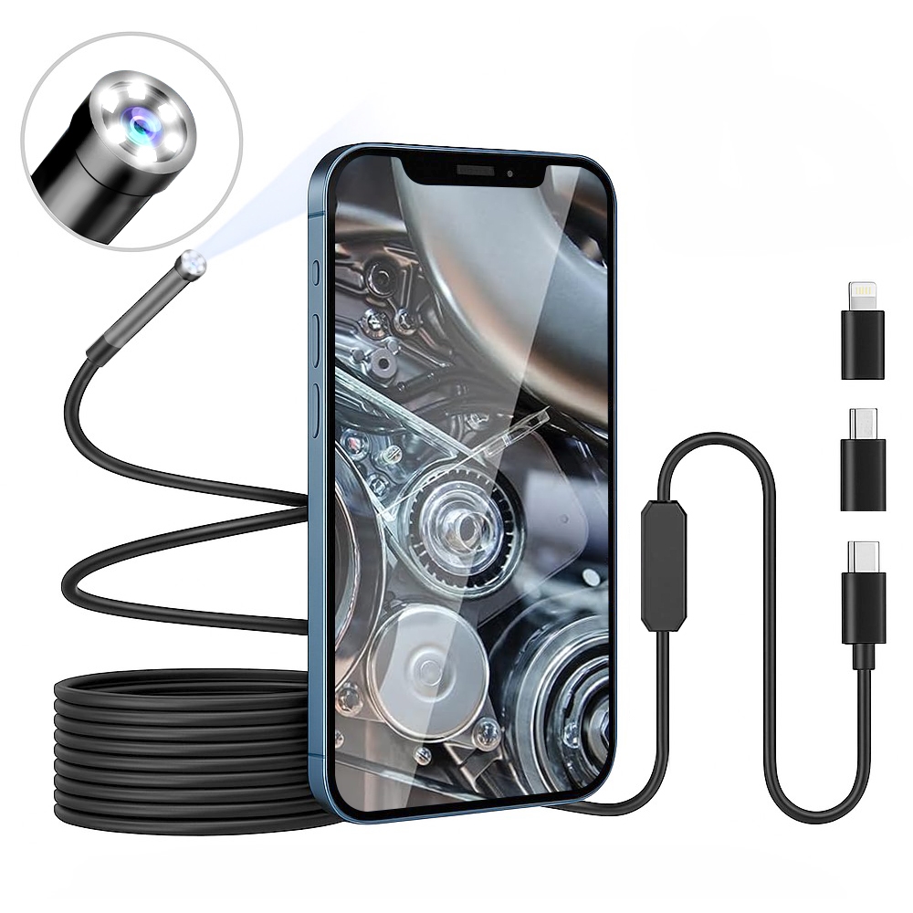 Vanntett 8 mm USB-C endoskopkamera for iPhone, iPad, smarttelefoner, nettbrett - USB-C/Lightning-adapter, USB-C/microUSB-adapter - 3 m