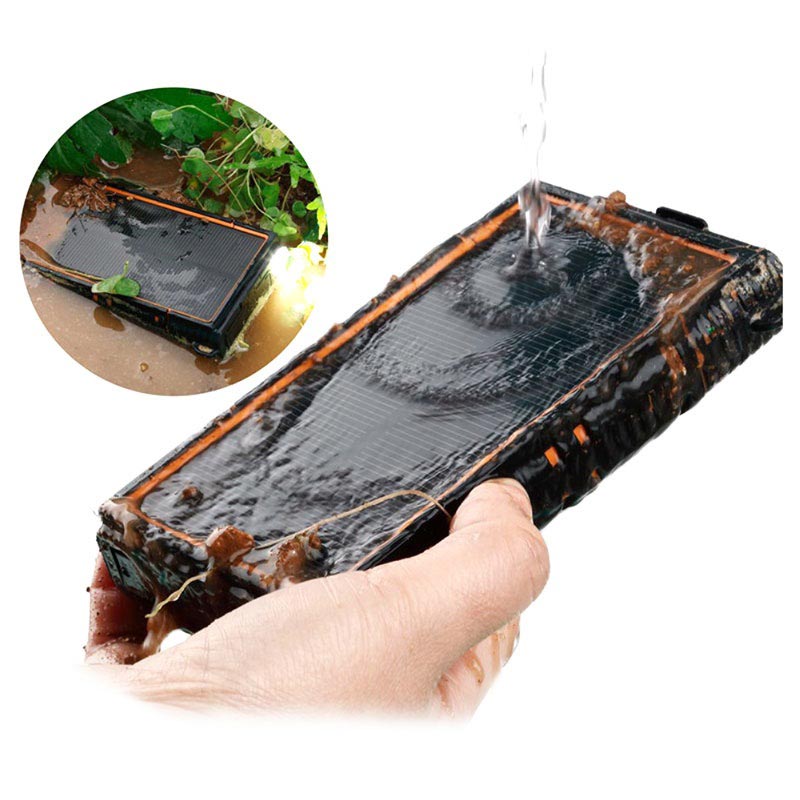 Har du tenkt å dra på campingtur på et sted uten strøm? Dra uten bekymringer! Fordi denne vanntette powerbanken kan lades opp ved å sette den i direkte sollys, hvilket betyr at utstyret ditt alltid vil ha ekstra strøm. Et innebygd, høykvalitets solcellepanel gjør denne universelle powerbanken til et ideelt, utendørs tilbehør til lading for sommersesongen.
