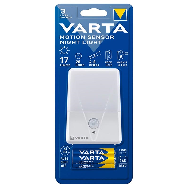 - Varta Motion Sensor Night Light kjører på 3 x AAA-batterier