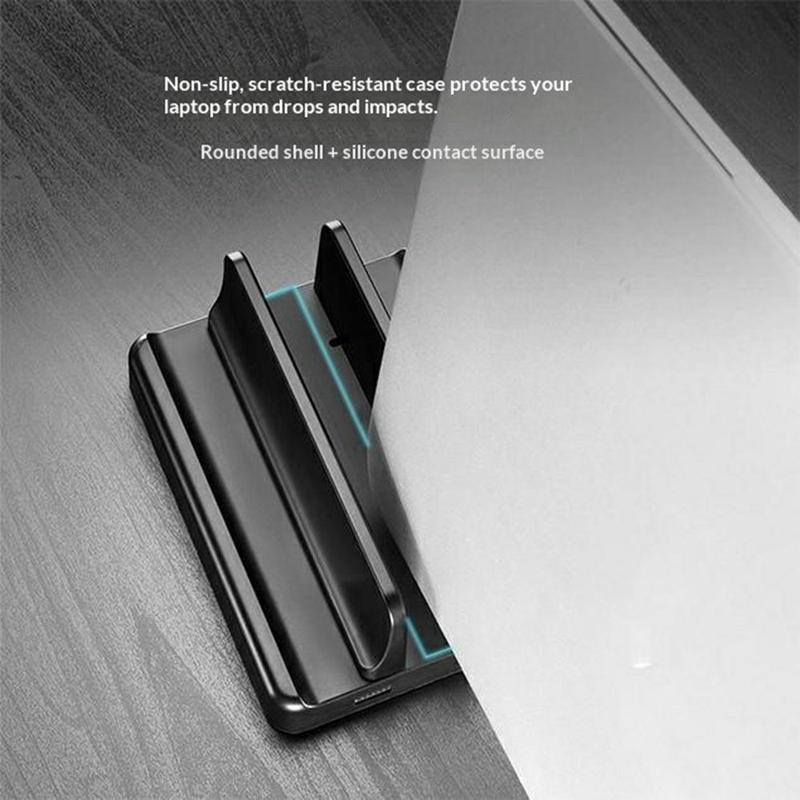 VAYDEER SZ2S011 vertikal stativ for bærbar PC er en kompakt skrivebordsorganisator som er designet for å frigjøre verdifull plass på skrivebordet, samtidig som den bærbare PC-en din er trygt oppbevart. Ved å holde den bærbare datamaskinen vertikalt skaper den et renere og mer effektivt arbeidsområde - ideelt for brukere som kobler den bærbare datamaskinen til en ekstern skjerm eller ønsker et minimalistisk skrivebordsoppsett. Den rene designen passer lett inn i moderne hjemme- og kontormiljøer.