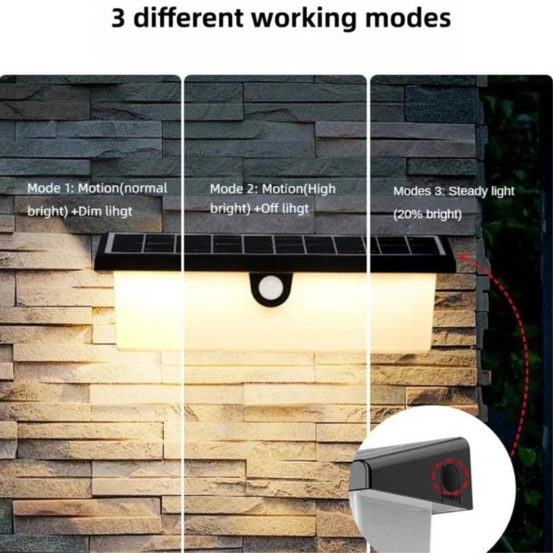 - Tre smarte moduser - PIR-bevegelse høy lysstyrke / alltid på høy lysstyrke / energibesparende lav glød.