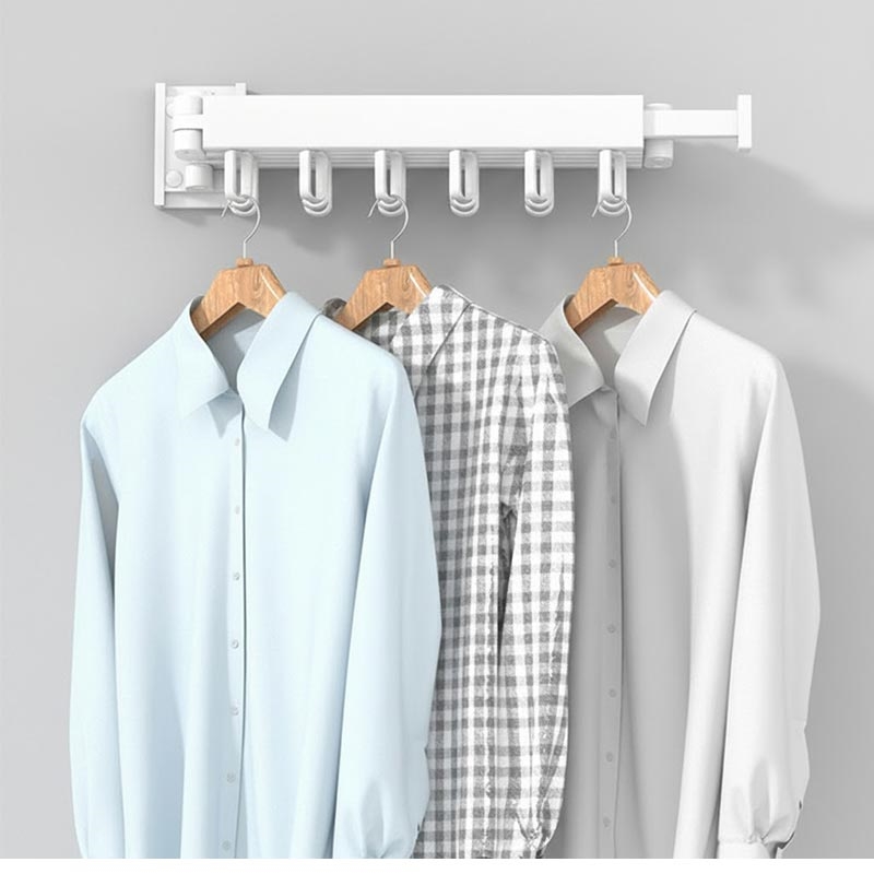 Veggmontert, uttrekkbar kleshenger - sammenleggbar, 360° roterende kleskrokskinne, plassbesparende aluminium, opptil 50 kg belastning