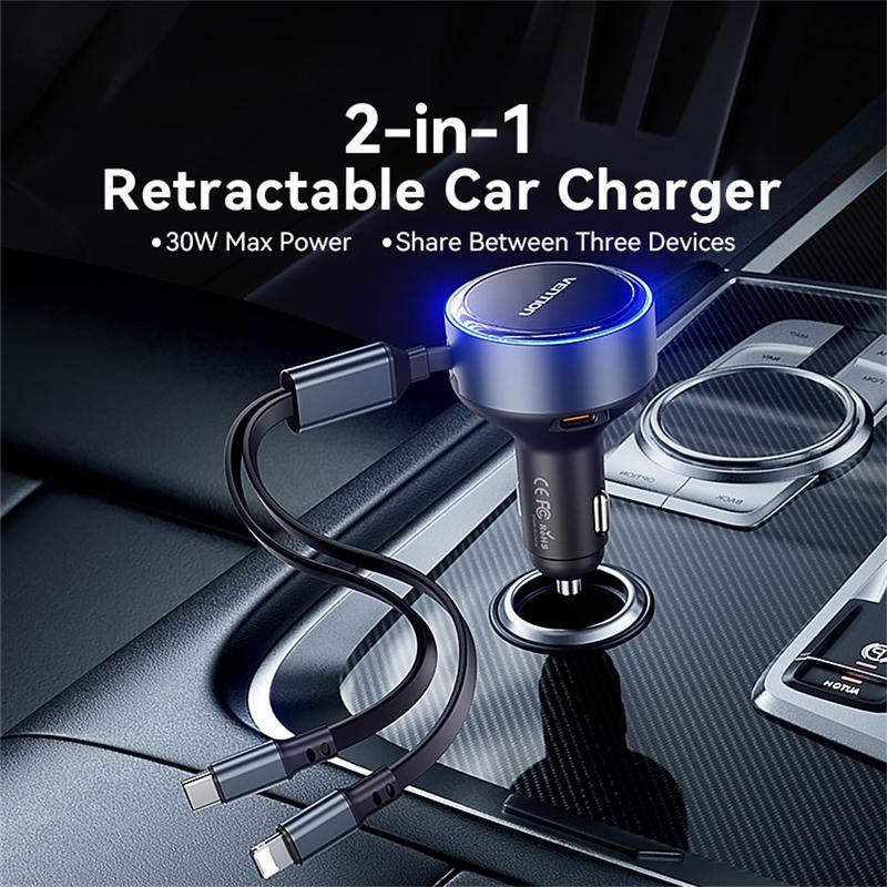 Vention FFOB0 PD 30W hurtigladende billader med innebygde USB-C- og Lightning-kabler