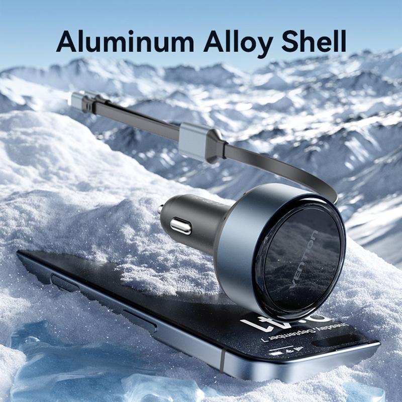 Nå er det slutt på å lete etter ekstra ledninger eller se batteriene tømmes på lange kjøreturer. Vention FFOB0 settes i en hvilken som helst 12 V-24 V-kontakt og leverer 30W Power Delivery gjennom USB-C-porten, pluss to innebygde kabler (USB-C og Lightning) som dekker nesten alle moderne telefoner og nettbrett. Én kompakt hub, tre ladealternativer - klar når som helst.