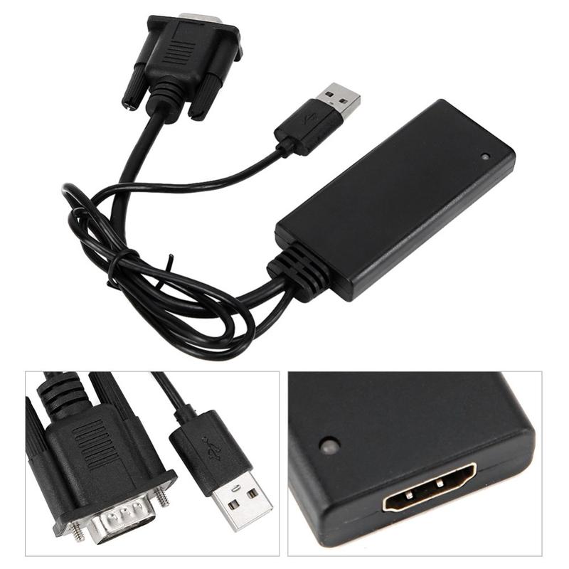 VGA til HDMI-omformer med USB-strømforsyning - 1080P-videoadapter med lyd for PC, bærbar PC, DVD og spillkonsoller