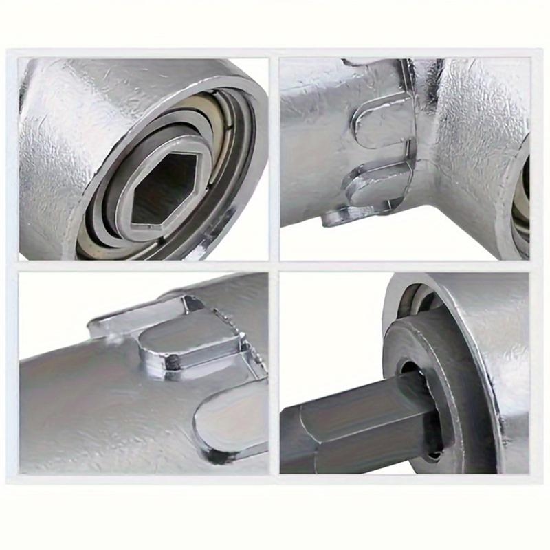 Jobb effektivt på trange og vanskelig tilgjengelige steder med dette 105° hjørnevenderborehodet. Det er laget av slitesterkt kromvanadiumstål og gir styrke og langvarig ytelse for både lette og tunge bruksområder. Den rettvinklede utformingen gjør det perfekt for reparasjoner, installasjoner og vedlikehold der standardverktøy ikke får plass. Denne allsidige adapteren er kompatibel med boremaskiner, batteridrevne boremaskiner og manuelle skiftenøkler, og sørger for jevn rotasjon av skruer og muttere selv på trange steder.