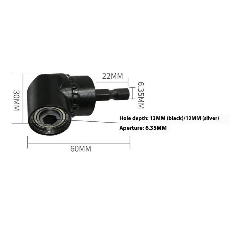 105° hjørneborehode - adapter for rettvinklet skrutrekkerbits, krom vanadiumstål, 1/4" sekskant, 60 × 30 mm