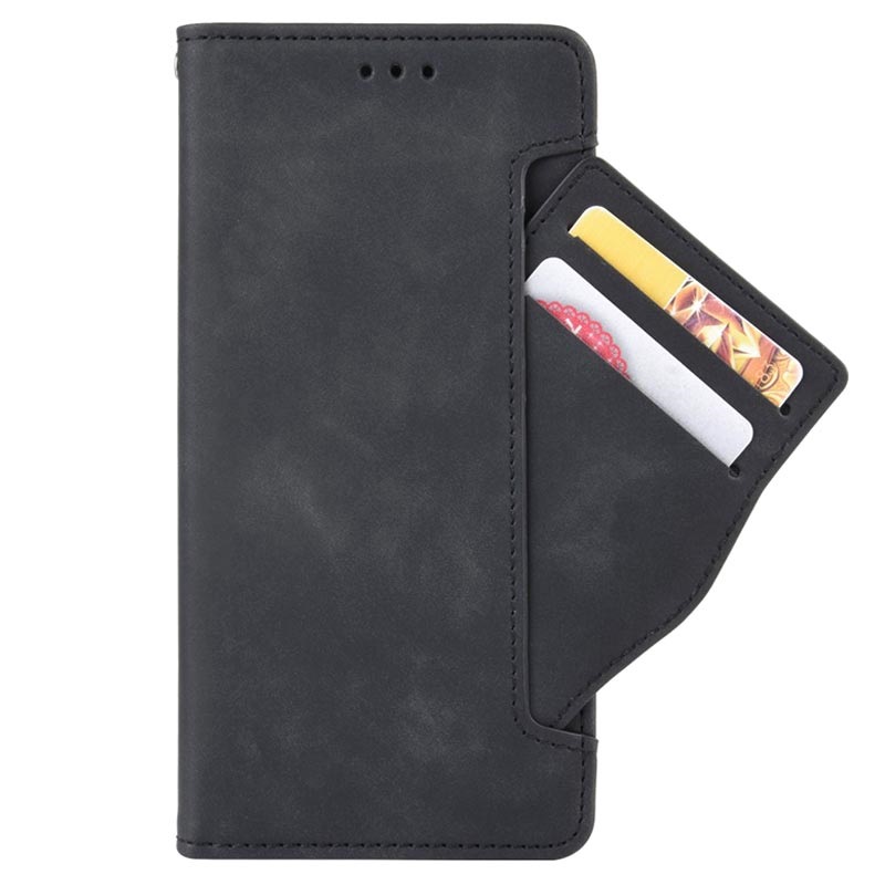 - Oppbevaringsrom for kort og kontanter på innsiden / utsiden, en fotoramme og stativfunksjon