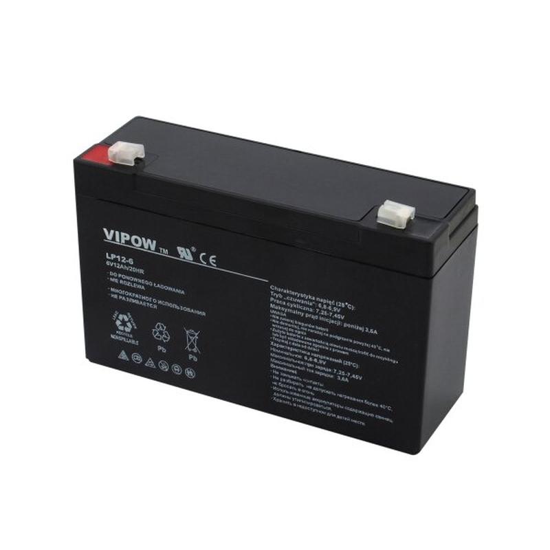 Vipow LP12-6 AGM-batteriet er et vedlikeholdsfritt og lekkasjesikkert VRLA-batteri med AGM-teknologi. Det er konstruert for både syklisk arbeid og bufferarbeid og kan brukes i alle posisjoner. VRLA-ventilregulert blybatteri er oppladbart og reguleres av en ventil. AGM-typen har en absorbert glassmatte, der elektrolytten absorberes i separatoren som er laget av glassmatte.