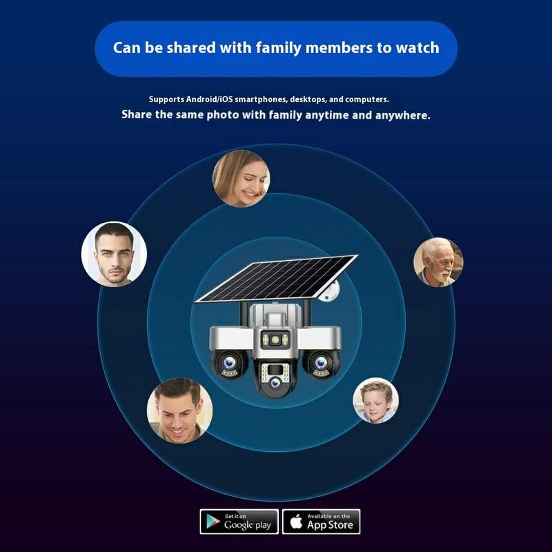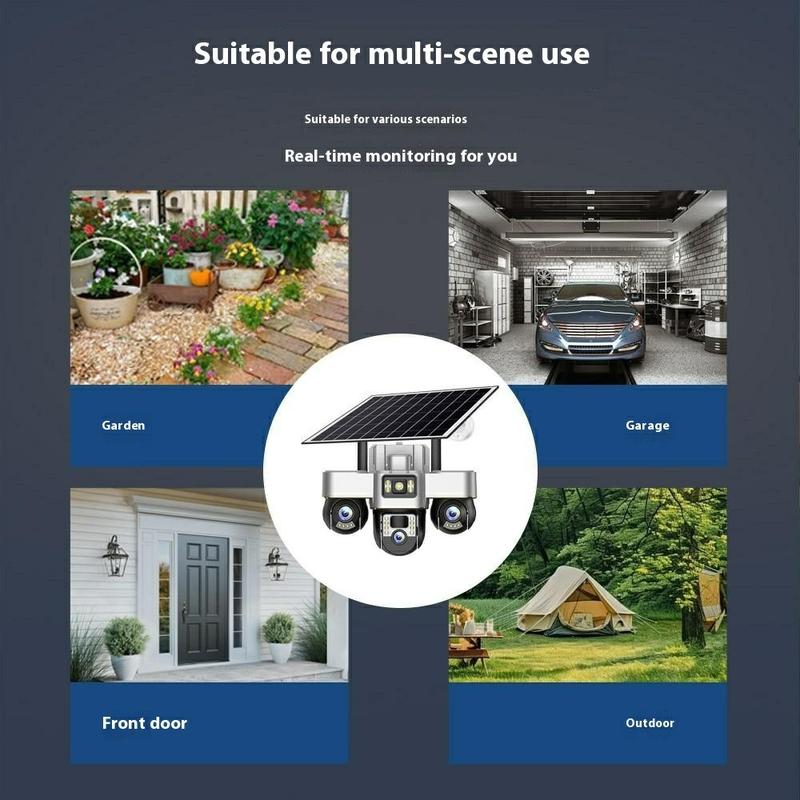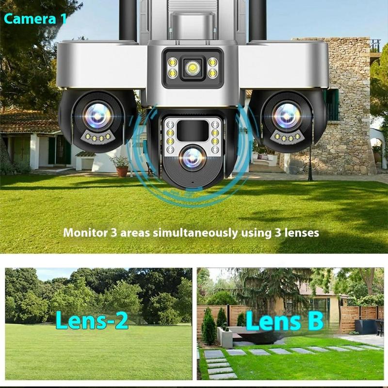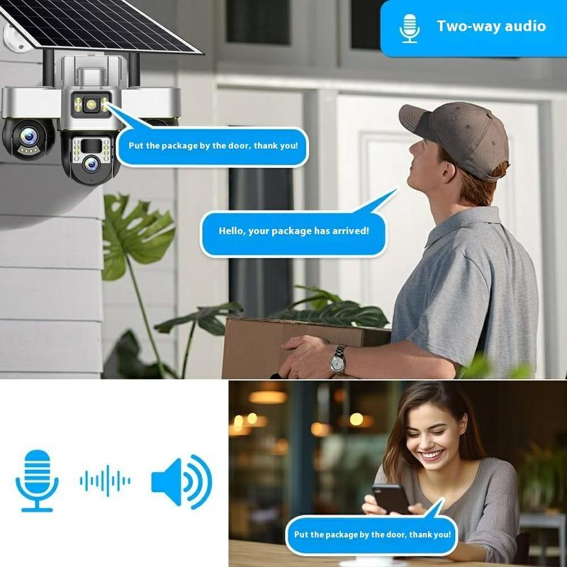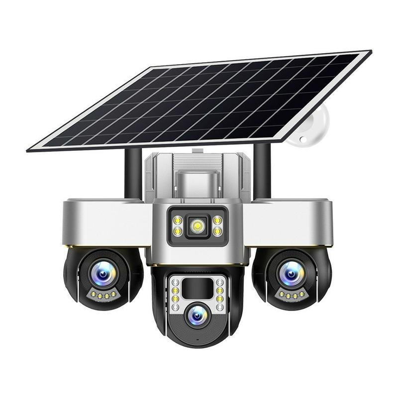 VTS30 V380pro solcelledrevet sikkerhetskamera med trippel linse - 360 ° Wi-Fi / 4 G overvåkingssystem med 8 W panel og 8 000 mAh batteri