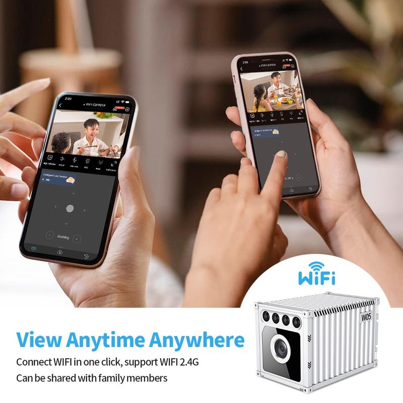 W05 1080p mini-WiFi-overvåkningskamera for innendørs bruk med nattesyn, bevegelsesdeteksjon og app-overvåking