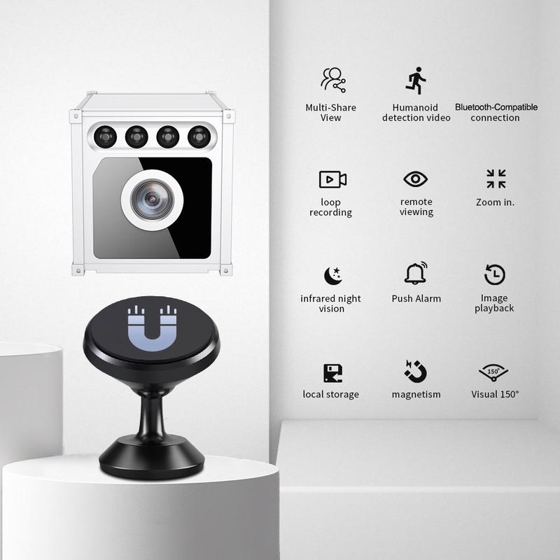 - Kompakt innendørs WiFi-overvåkningskamera med magnetisk brakett for fleksibel plassering