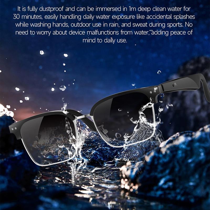 W100D AI Bluetooth Smart Audio-briller - sanntidsoversettelse, stemmeassistent, musikkavspilling, IP67 vanntett