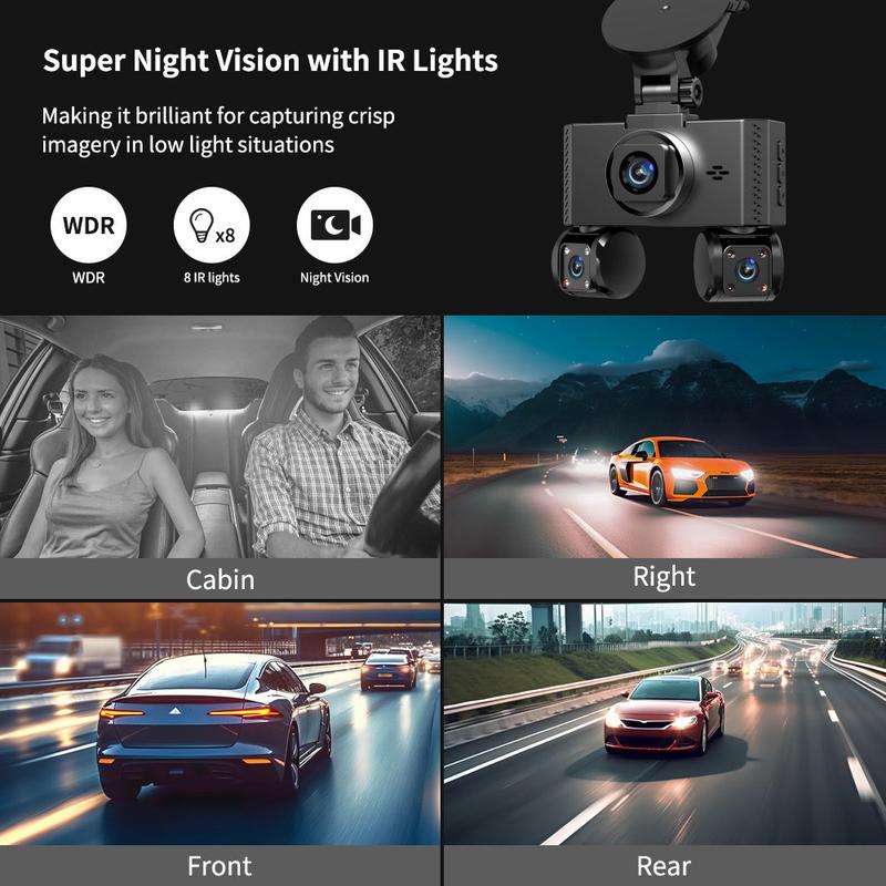 Få omfattende beskyttelse av kjøretøyet med ESCAM W3 4-kanals WiFi Dash Cam, som sørger for sikkerhet, klarhet og trygghet hver gang du er ute på veien.