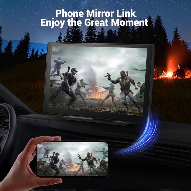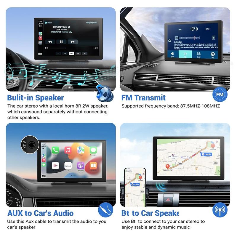 W519 9-tommers trådløs CarPlay- og Android Auto-skjerm med GPS-navigasjon, Mirror Link og stemmestyring