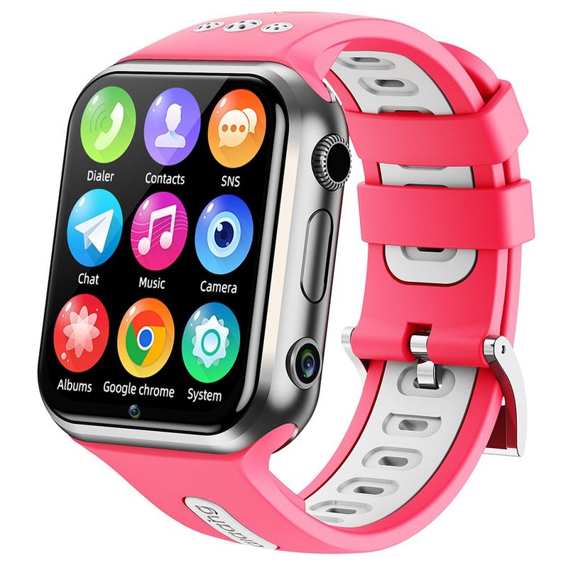 W5PRO 4G barneklokke med to kameraer 2+16G Slitesterk 1.83" IPS HD smartklokke - Sølv / Rosa