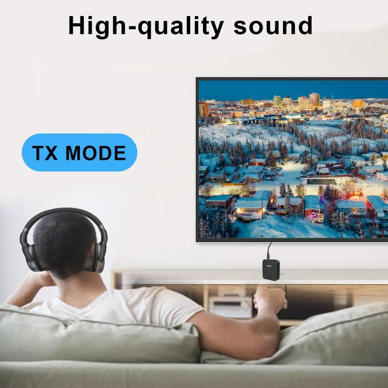 I TX-modus sender adapteren lyd fra ikke-Bluetooth-enheter som TV-er, MP3-spillere, DVD-spillere eller PC-er til Bluetooth-hodetelefoner eller -høyttalere. Ideell for TV-titting sent på kvelden uten å forstyrre andre.