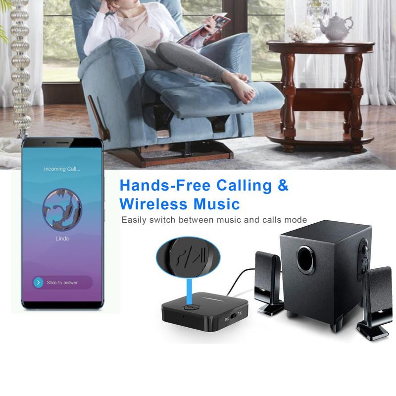 I RX-modus forvandler den alle kablede høyttalere, billydanlegg eller hodetelefoner til Bluetooth-aktiverte enheter for trådløs musikkstrømming fra telefonen eller nettbrettet.