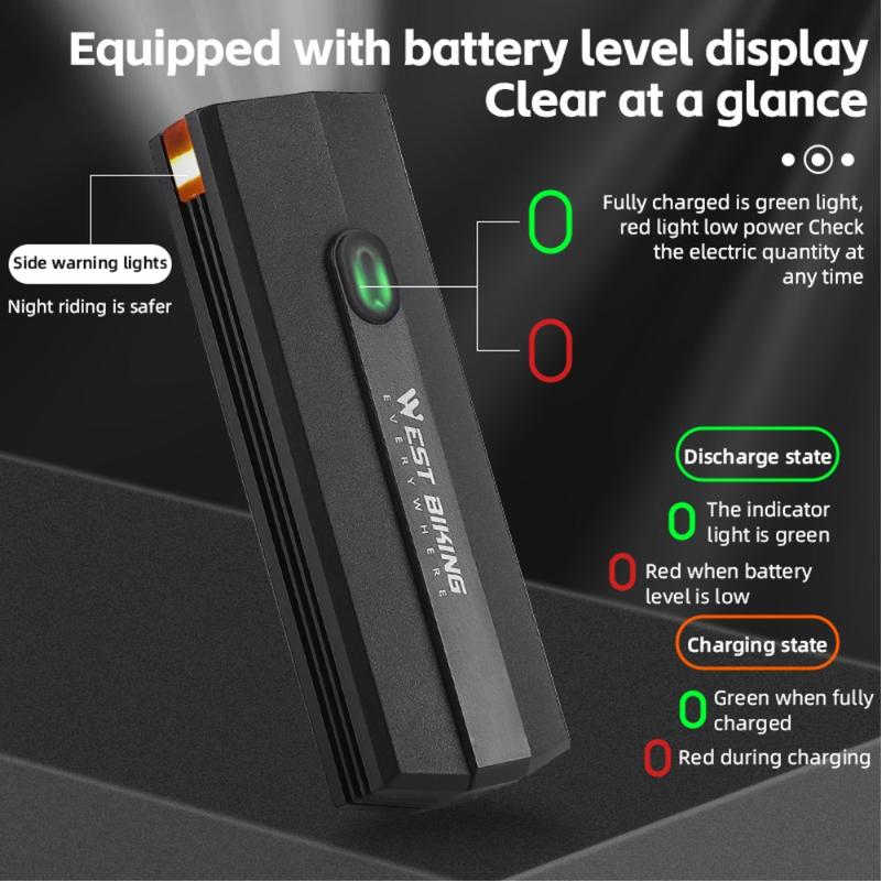 WEST BIKING YP0701407 Sykkelhodelykt i plast 400LM nattlykt for sykkel - svart